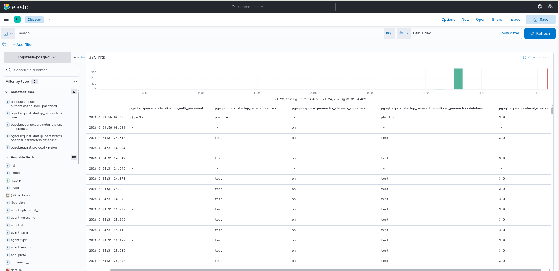 We have PostgreSQL/pgsql protocol logging - it is great to have it in the SIEM and doing visualizations with it.