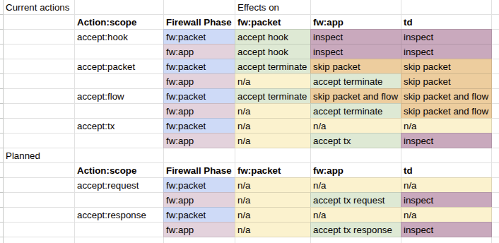This makes sense and aligns with our vision - adding pass_packet and pass_flow as specific configs to completely bypass IPS while leaving packet/flow to still go to IPS was the behavior we were hoping for. The accept:request and accept:response are also aligned. Our intention is also to be able to use these additions as default actions in relation to this redmine - https://redmine.openinfosecfoundation.org/issues/7701